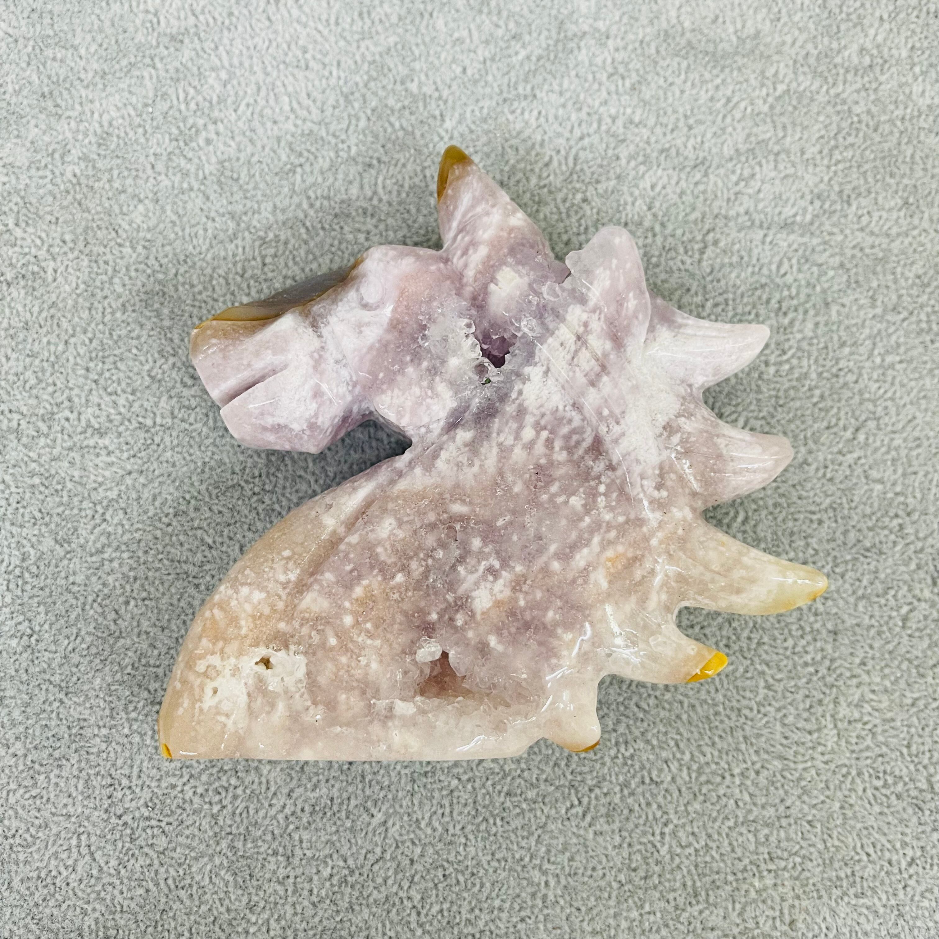 ピンクアメジストは、豊かさ・愛情を引き寄せる効果もあるとされており、幸福な未来へのサポートをしてくれるでしょう。このユニコーンがあなたを幸せな旅に導いてくれますように。