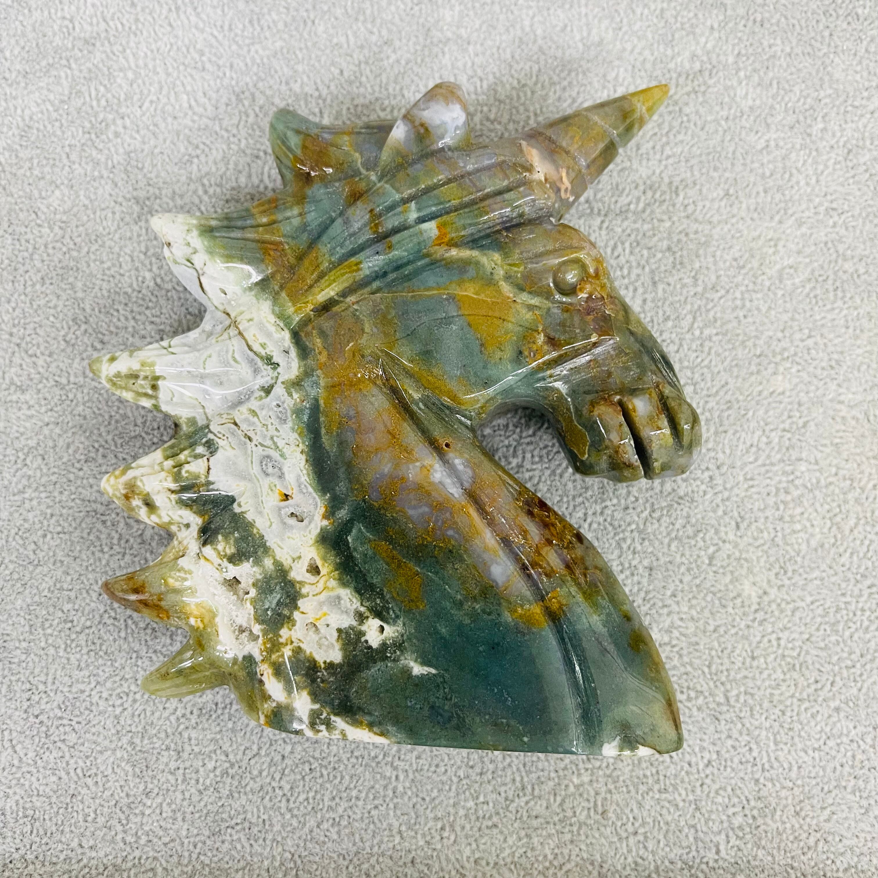 水草瑪瑙ユニコーン置物