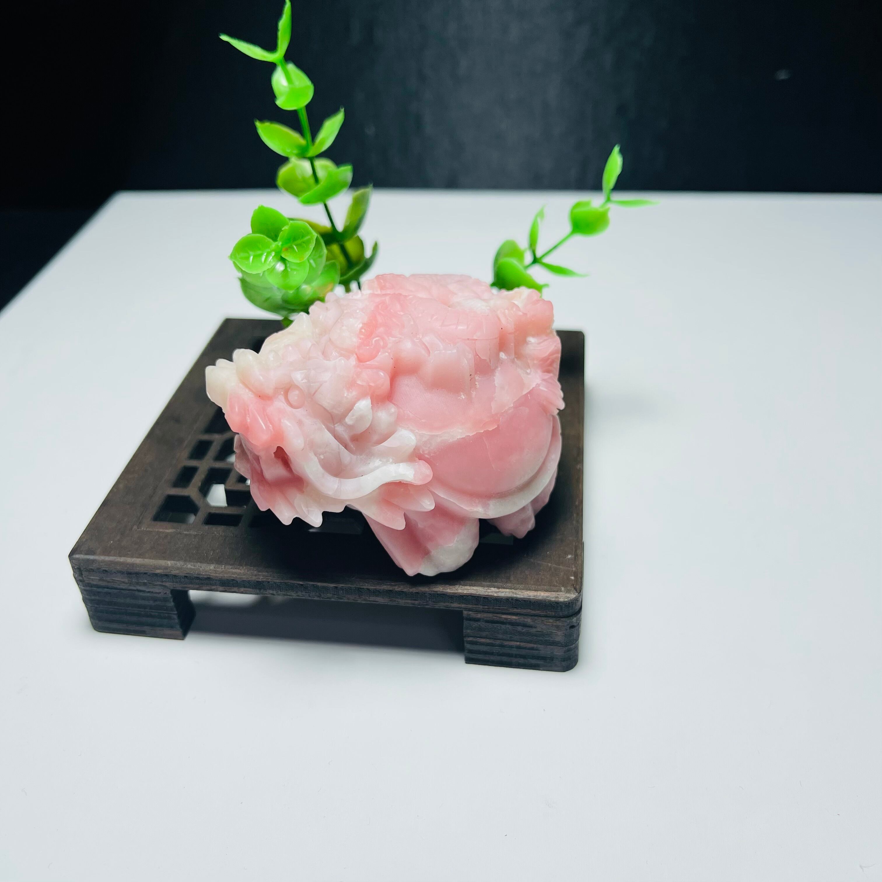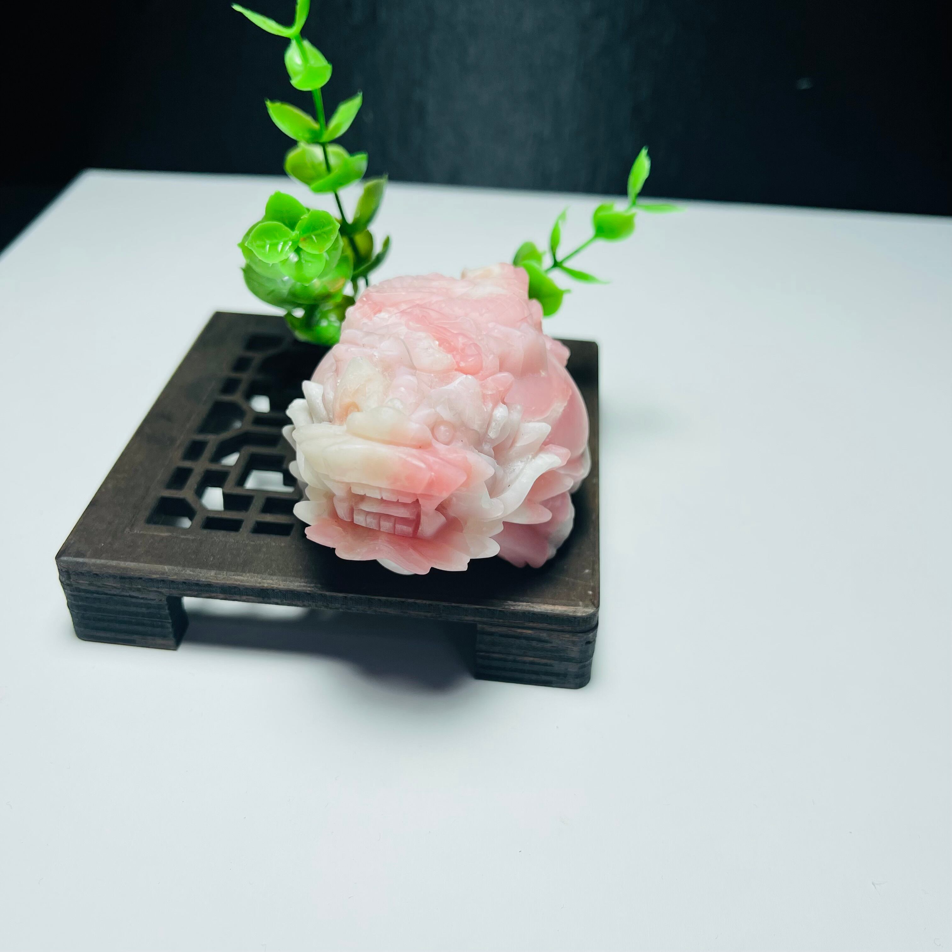 純粋なピンクオーパルから作られた、美しい龍のロングイ置物をご紹介します。天然石ならではの光沢と透明感が特徴で、手彫りの細かいディテールが見事です。龍は、古代の神秘的な生き物として、知識や権威、力を象徴しており、その存在感は圧巻です。