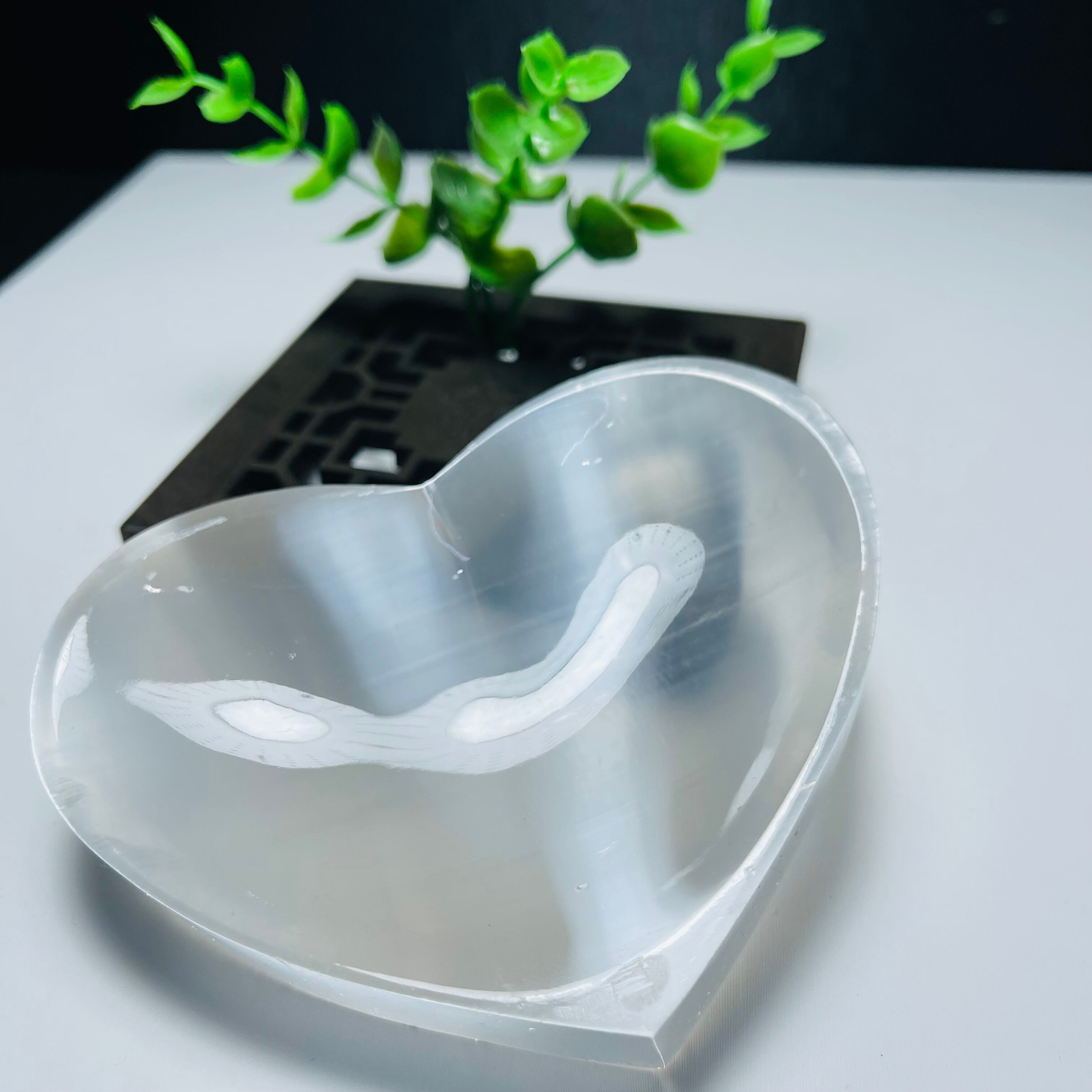<天然石セレナイト ハートお皿>は、丁寧に仕上げられた美しい逸品です。その美しさとパワフルなエネルギーが、あなたの癒しの時間をサポートします。是非、特別な場所に飾ってみてください。